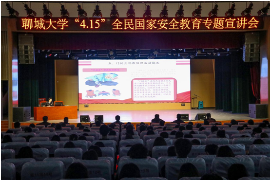 为深入学习宣传贯彻党的二十大精神,落实总体国家安全观,提高师生国家安全意识,4月13日,在第八个全民国家安全教育日到来之际,由党委保卫工作部、党委学生工作部、校团委联合组织的全民国家安全教育专题宣讲会于西校区科学会堂举办。本次宣讲会特邀聊城市公安局二级警长张丽婷作以《展青春风采 担时代使命 共同维护国家安全钢铁长城》为题作主题宣讲。党委保卫工作部负责同志及各学院辅导员、部分学生代表现场聆听。